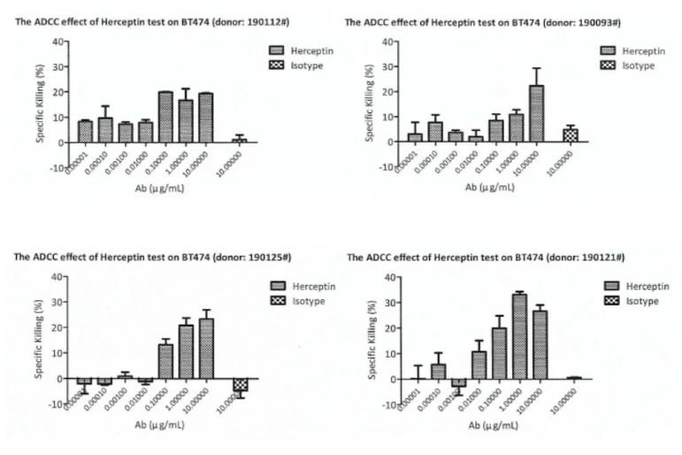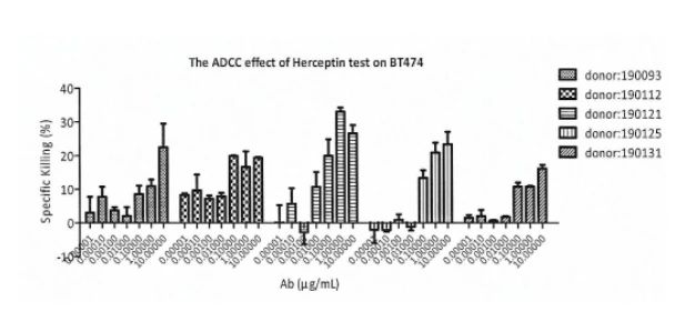 为解决PBMC筛选问题,赛笠生物提供了完整的ADCC实验解决方案,并将经过ADCC筛选表现良好的PBMC批次推荐给客户。