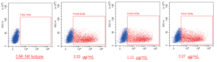 CAR-NK细胞阳性率检测结果显示:极低浓度G4S linker(905-5)Rabbit mAb ( 0.37 ug/mL) 即能充分检测CAR阳性率。