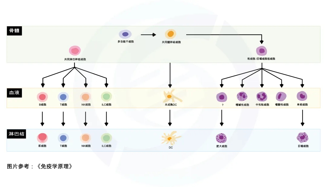 NK细胞又称自然杀伤细胞(natural killer cell,NK细胞),是机体内重要的免疫细胞,NK细胞形态上属于大颗粒淋巴细胞,来源于骨髓,是除T细胞、B细胞之外的第三大类淋巴细胞,约占血液中所有免疫细胞(白细胞数量)的15%,属于天然免疫系统的核心细胞,主要分布于外周血、肝脏和脾脏,在人体内NK细胞主要特征为CD3-CD56+淋巴细胞群,其中血液中主要为CD16+CD56dim亚型(根据细胞上CD56分子表达密度的差异,将NK细胞分为CD56dim和CD56bright两个亚群;CD56dim占NK细胞90%以上,主要为细胞毒作用,表达中度亲和力的IL-2受体(IL-2R),具有更强的杀伤活性;CD56bright可产生大量细胞因子,主要起免疫调节作用,高表达IL-2R)。