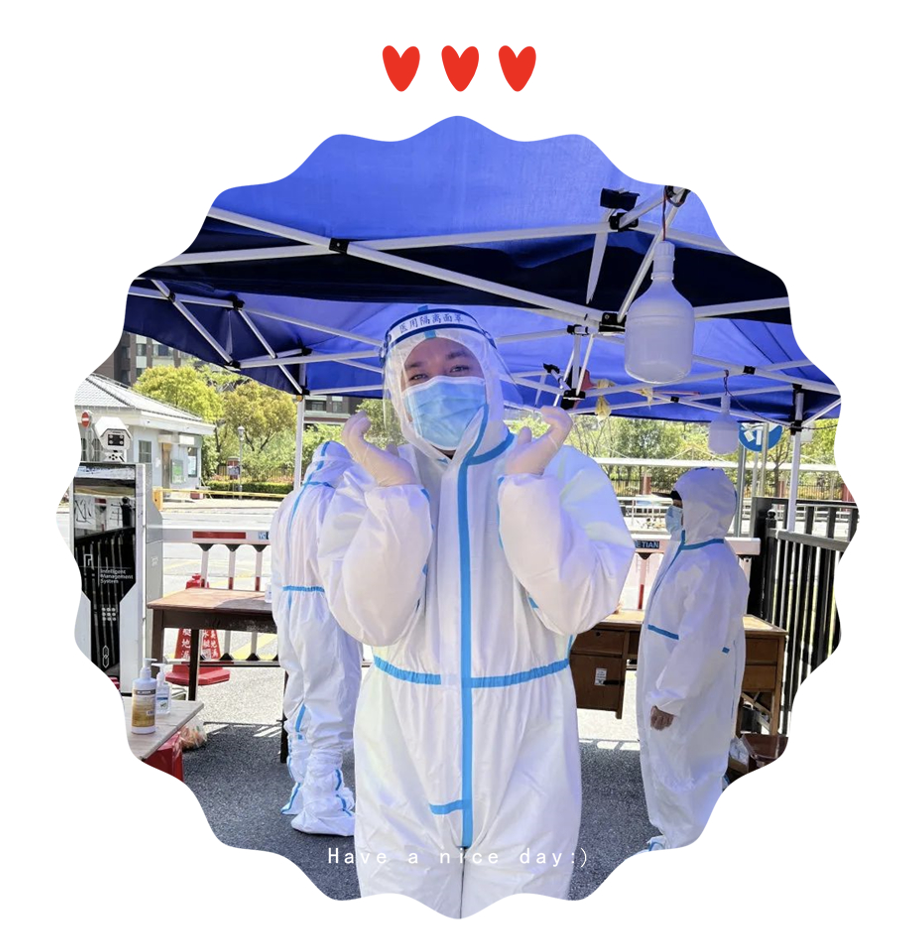 另一位化身“大白”的赛笠人对小编说到:“在参与防疫工作的过程中感受到了社区工作的不易和艰辛,所有志愿者为这个城市的防疫同心同德,大家为群众排忧解难的氛围也感染了我,同时也感谢居委给予我这段磨炼意志、坚定信念的难忘经历。坚信面对疫情只要大家团结一心,众志成城,就一定能攻无不克,战无不胜!”